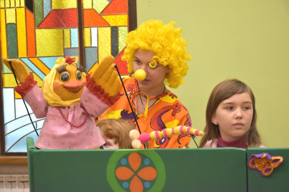 Крім вистави, дітям провели майстер-клас із лялькової справи. Театрали намагалися показати тонкощі своєї роботи, навчити володіти лялькою. Усім охочим намалювали візерунки аквагримом, а розважали дітлахів циркові клоуни на роликах.