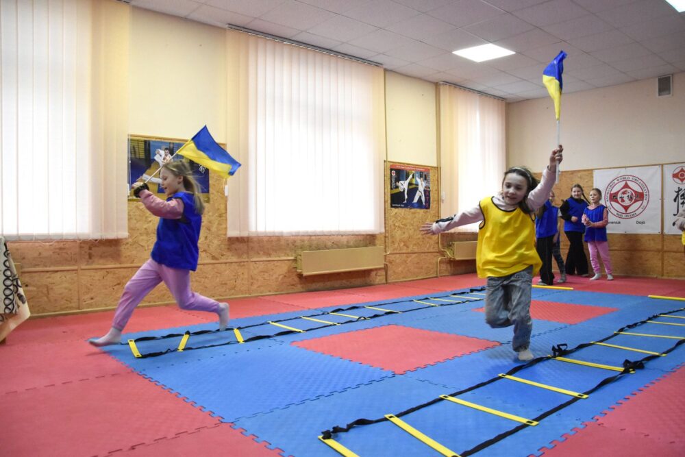 Провідний професіонал Луцького МЦФЗН «Спорт для всіх» Галина Тимощук розповіла, що багато вихованців «Стріли» зараз захищають Україну на передовій, а на святі присутні їхні діти. Також на стіні закладу висить український стяг із підписами захисників.
