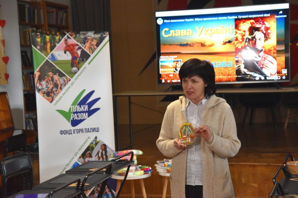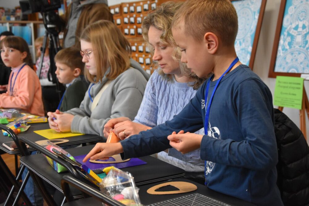 Уроки для дітей в книгозбірні проводять вже кілька років спільно з волонтерським рухом «Меценати для солдата» та за підтримки Фонду Ігоря Палиці «Тільки разом».Заняття, яке 24 квітня відвідали близько 15 дітей полеглих воїнів, присвятили Великодню. До свята малеча створювала підвіски, які будуть використані в пасхальних кошиках.
