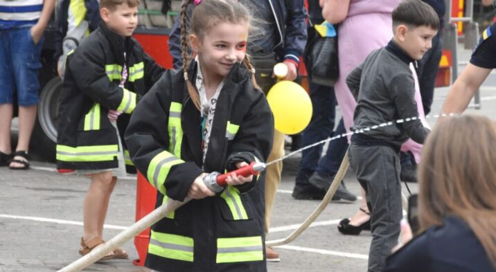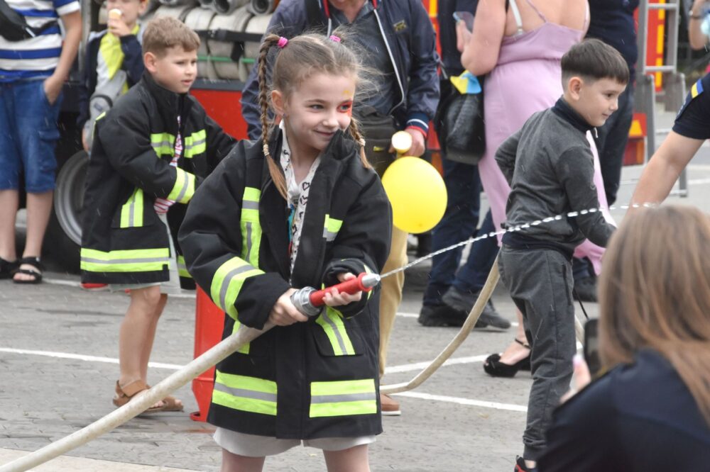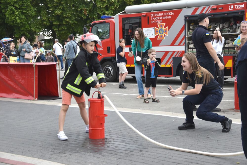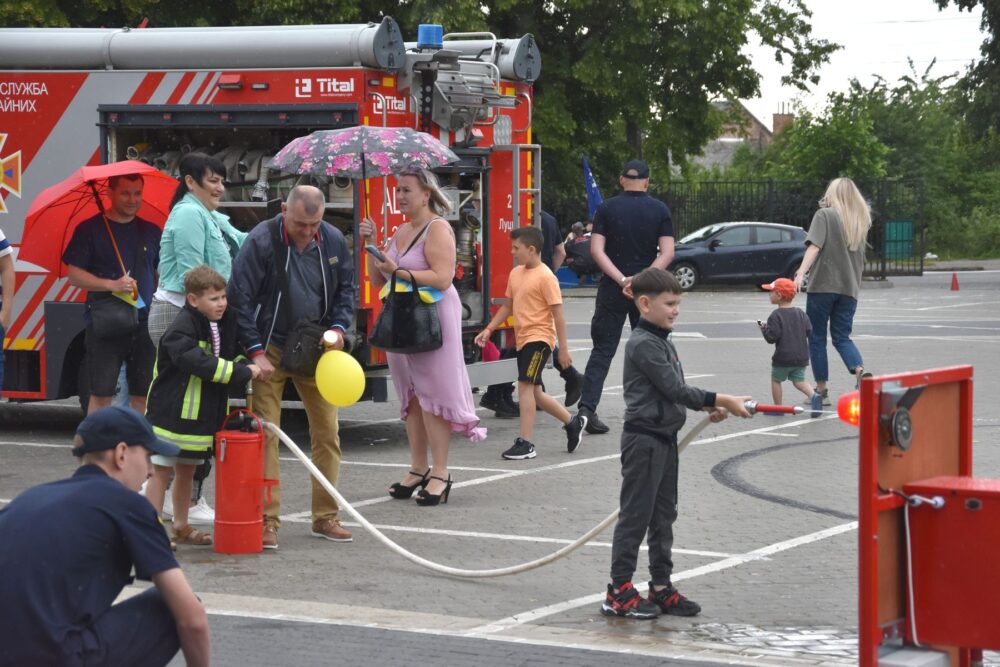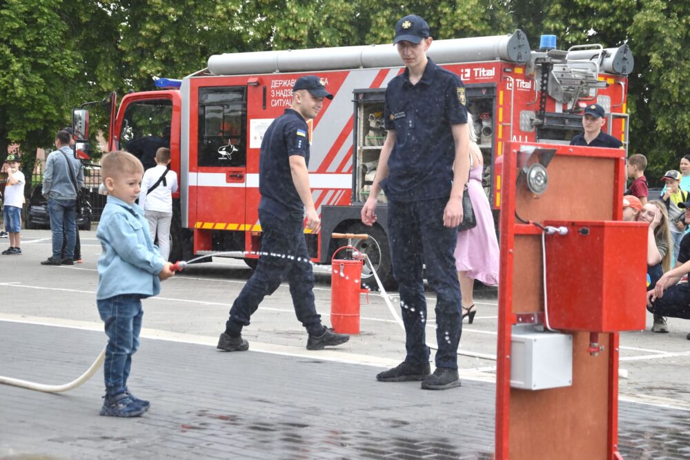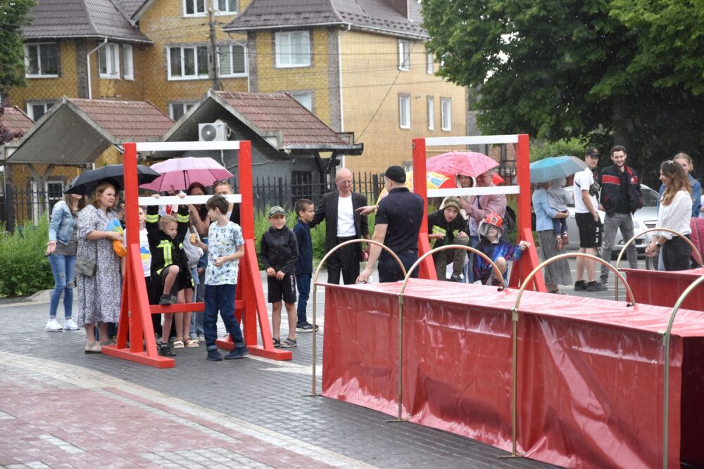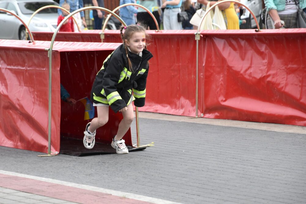 «Ми підготували дітям невелику смугу перешкод, де їм потрібно одягнути рятувальний одяг, подолати огорожу, пройти через тунель та загасити умовну пожежу. У команді є дві дитини: одна гасить, інша закачує воду. Такі заходи важливі для дітей, адже розвивають безпекову поведінку, тобто вони вчаться, як діяти в різних критичних ситуаціях. Ніби маленьке змагання, де ми ще й розповідаємо корисні речі», – зауважив інспектор.