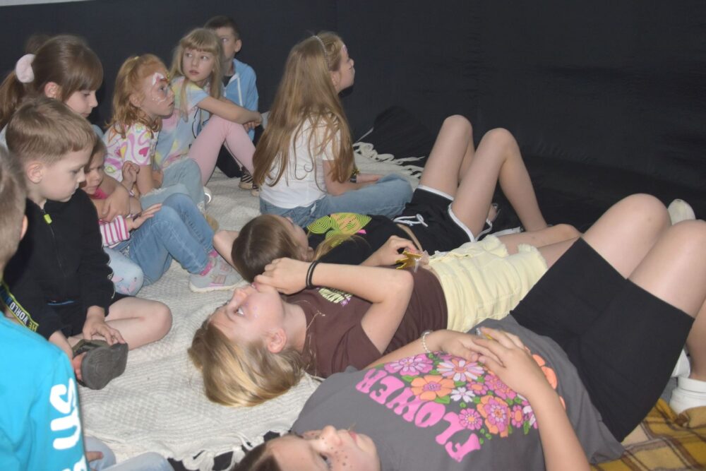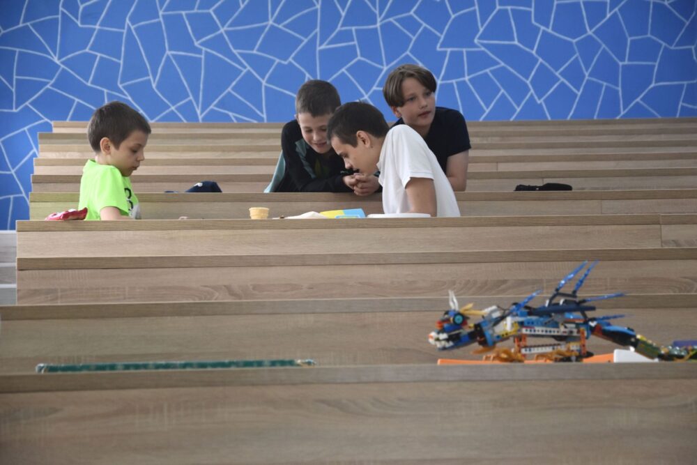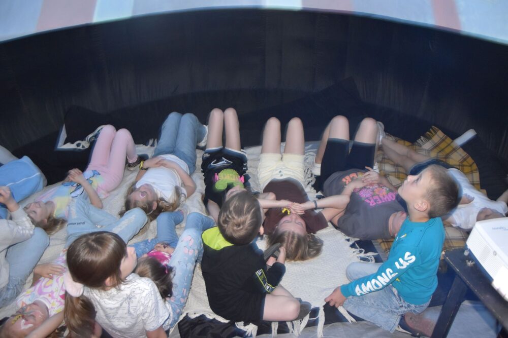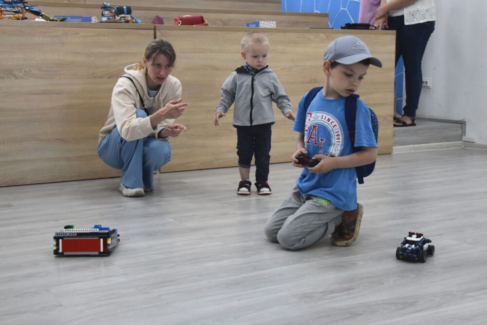 У середині вишу розташувалися технічні локації: робототехніка, малювання, інженерія. Дітям на прикладах показали всі принади творчості та винахідництва. Але найбільше малеча вподобала планетарії, який переніс у відкритий космос.