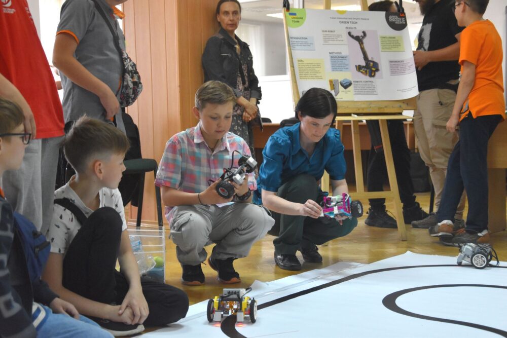 «У Малій академії наук працює студія робототехніки для учнів 5-7 класів та секція, де діти вже більш серйозно займаються. Спільно з вишами та партнерами ми влаштовуємо чемпіонати з робототехніки. До слова, єдині в області. Змагання раніше відбувалися в категорії сумо (на найсильнішого робота), а сьогодні – слалом», – зазначила Тетяна Михалюк.