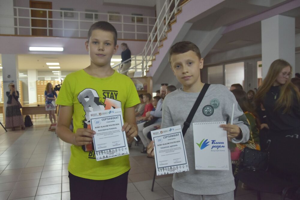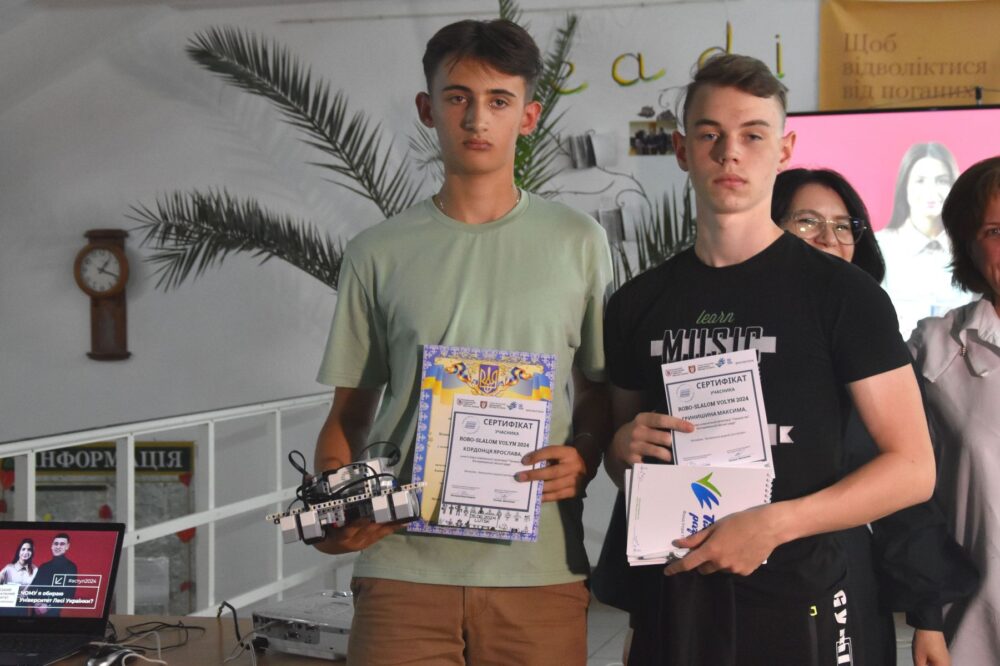Перше місце в категорії слалом швидкісний здобули Юліан Головчук та Дмитро Назарук із Луцького ліцею №9. Їхній робот нещодавно виграв гранпрі всеукраїнського чемпіонату. Невдовзі хлопці поїдуть із ним представляти Україну на «Всесвітню олімпіаду геніїв» у США.