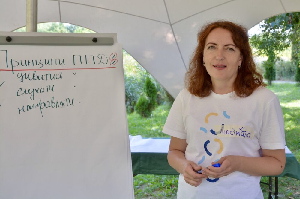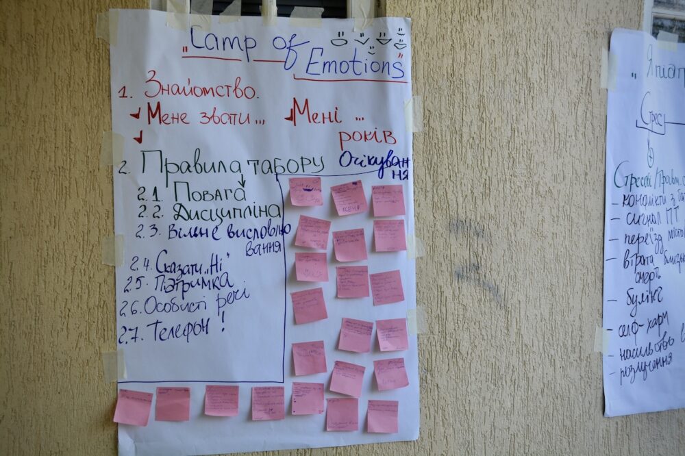 Під час табору з підлітками працює практичний психолог, голова ГО «Територія можливостей ДЕЙЛО» Людмила Мельник. Вона допомагає їм справитися з непростими емоціями та вчить боротися зі страхом, злістю.