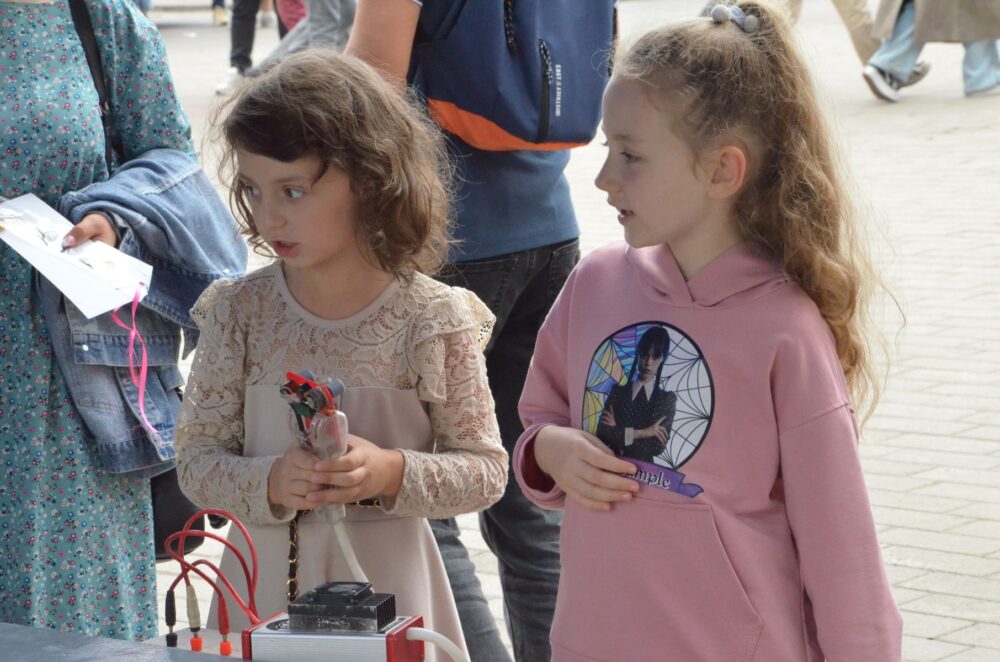 Особливо насичено проводили час наймолодші відвідувачі, які буквально доторкнулися до науки та техніки руками. Адже під час заходу була й пожежна машина, куди можна залізти, і рятувальний одяг, що можна приміряти, і поліцейське спорядження, яке можна потримати. Був навіть котик, якого дозволяли погладити.