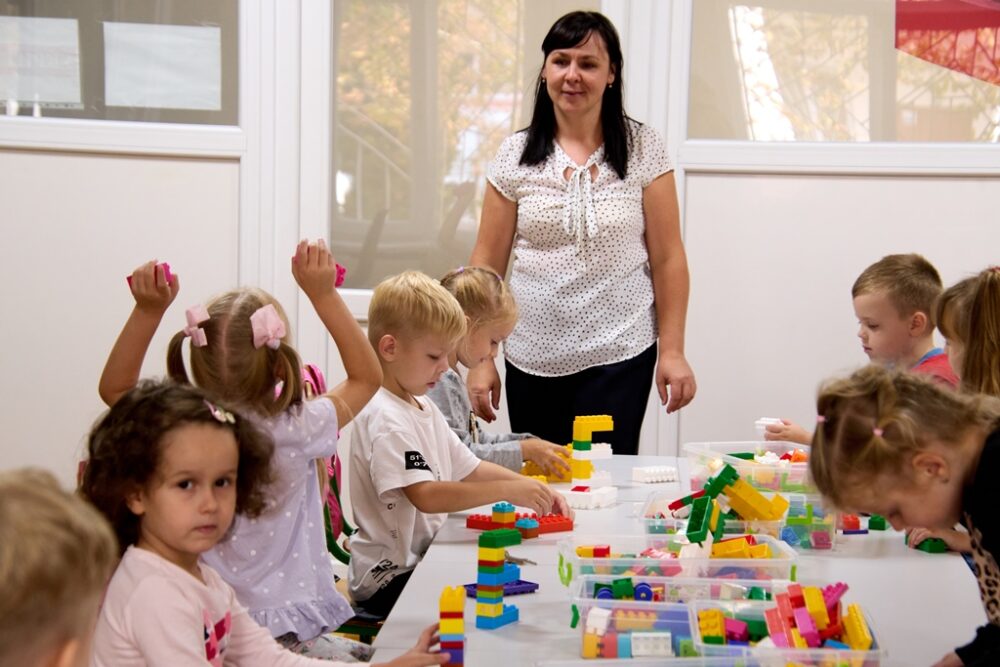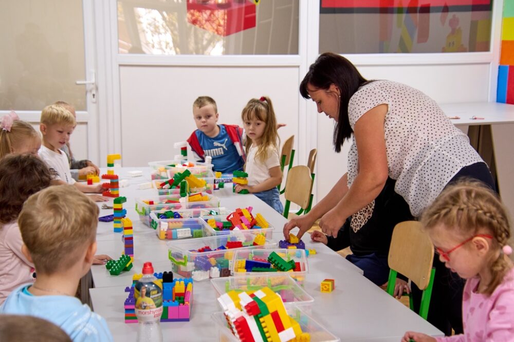 Директорка центру провела імпровізовану екскурсію закладом. Відчутно, що у цих стінах головними є діти. Вони тут – усюди, і усе тут – для них! У деяких класах проходять заняття, адже свято-святом, а навчальний процес перериватись не повинен. У LEGO-лабораторії, наприклад, частина діток розвиває дрібну моторику – працює з кубиками, а частина працює за комп’ютерами.