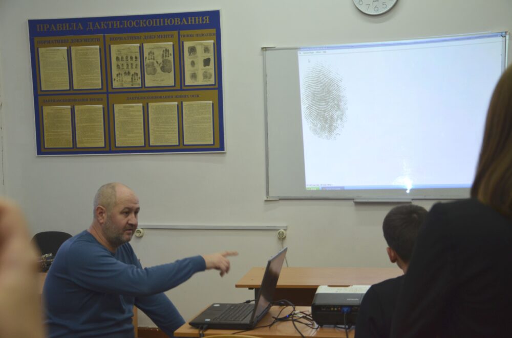 На черговому уроці криміналістики школярам показали, як знімають відбитки пальців.