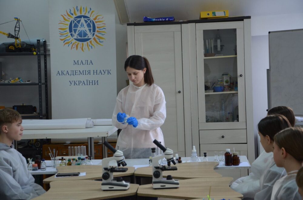 Як розповіла викладач Орися Березнюк, діти вивчають свою шкільну програму, але мають змогу робити це більш поглиблено. У лабораторії є широкий асортимент реактивів, що стають основою учнівських експериментів.