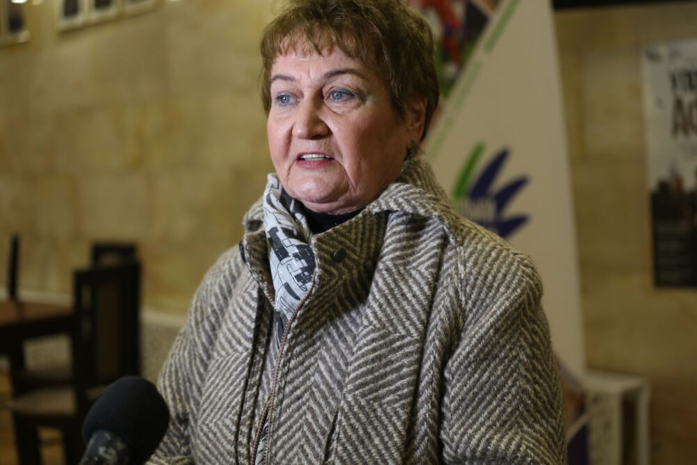 Пані Людмила представляє «Волинський Акме-Університет» – проєкт для людей старшого віку, що фокусується на навчанні та соціальній активності. Каже: чудово, що є нагода провести час у театрі.