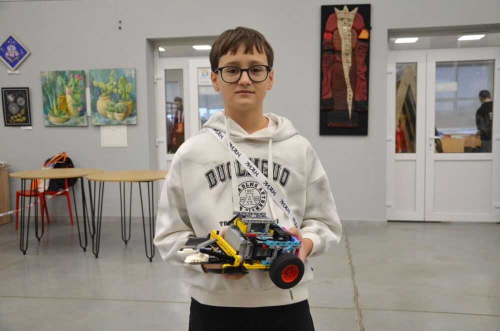 «Побачив, як минулоріч учні з моєї школи поїхали на олімпіаду геніїв і посіли перше місце. Тому зацікавився і сам спробував зібрати робота. Складав його місяць. Там є моторчик, блок на 8 вольт. Але мені трохи не вистачило потужності, щоб виграти. На змаганнях був мандраж, втім своїм результатом задоволений», – поділився 12-річний хлопець.