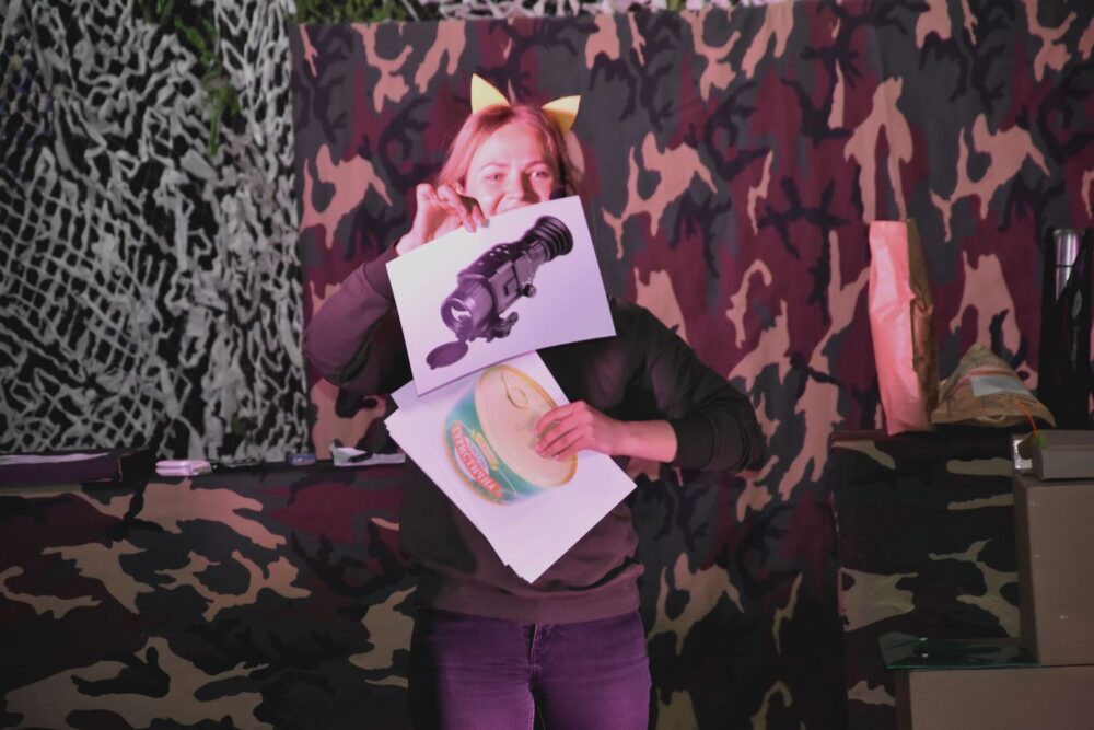 У Луцьку в укритті ліцею № 22 відбулася прем’єра вистави «Два скетчі про війну», яку створили за сценарієм харківської письменниці Юліти Ран. Головні ролі виконали актори громадської організації «Жива лялька». У виставі глядачів ознайомили з діяльністю ЗСУ і волонтерів через ігрову форму та гумор.