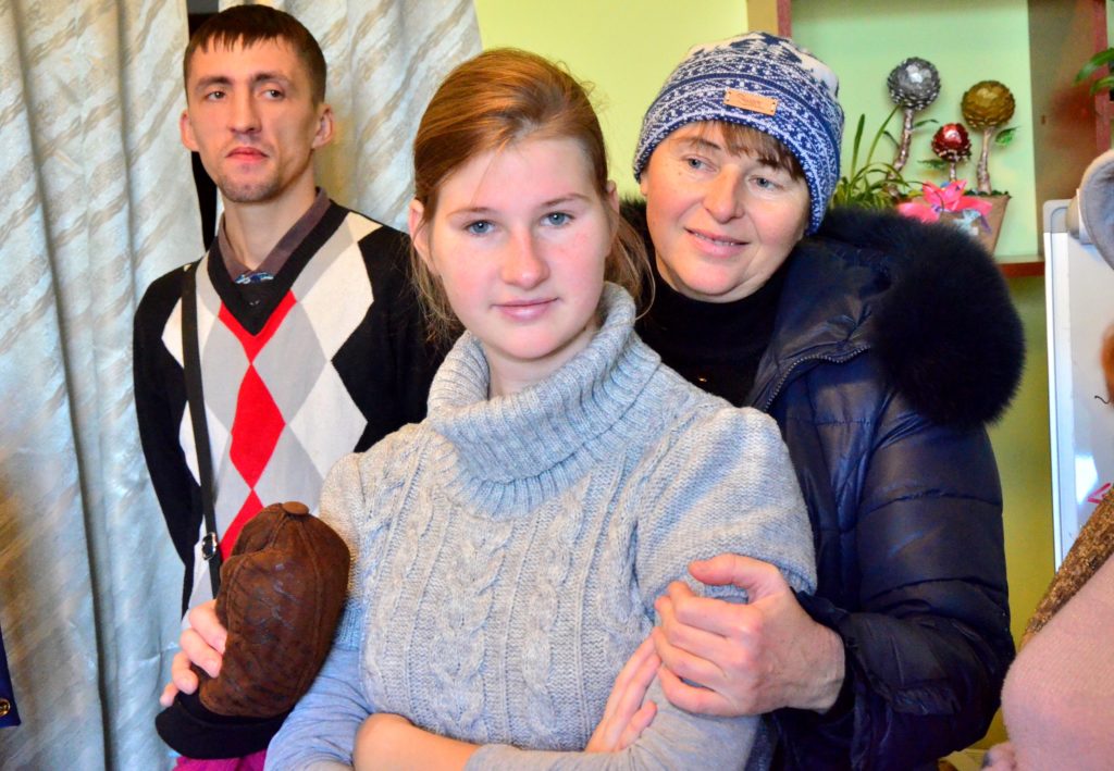 Свою світлину розглядає Катерина Жуковська. У дівчинки синдром аутизму та ДЦП. ЇЇ мама – Надія розповідає, що ще в дитинстві донька проявила любов до музики. Постійні заняття дали результат. Зараз дівчина грає на маракасах та танцює. Нещодавно її запросили на конкурс у Канаду.
