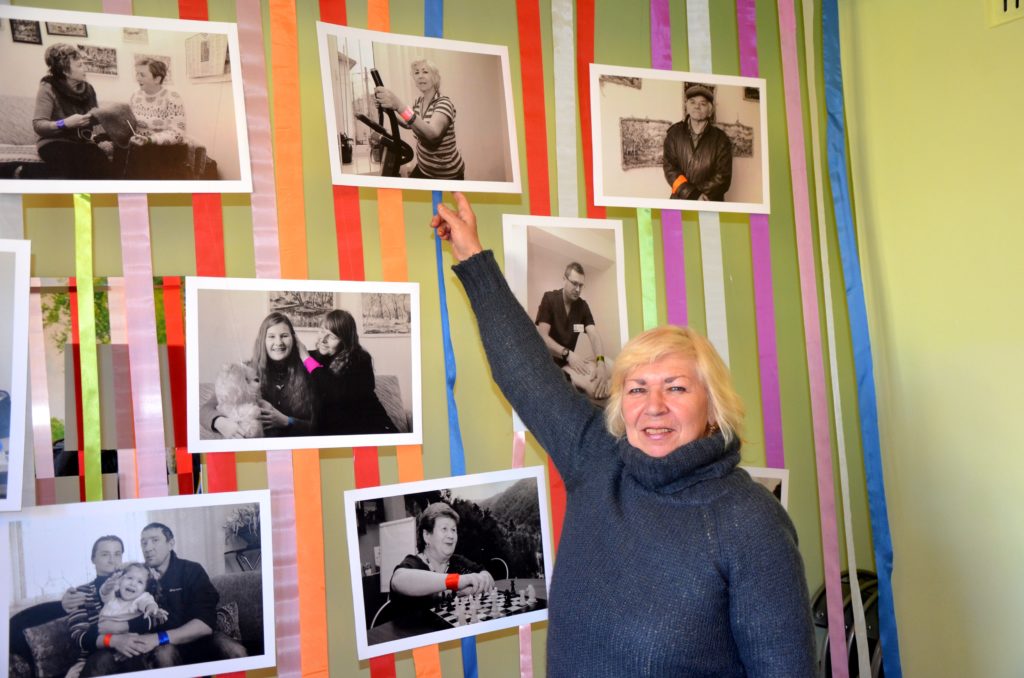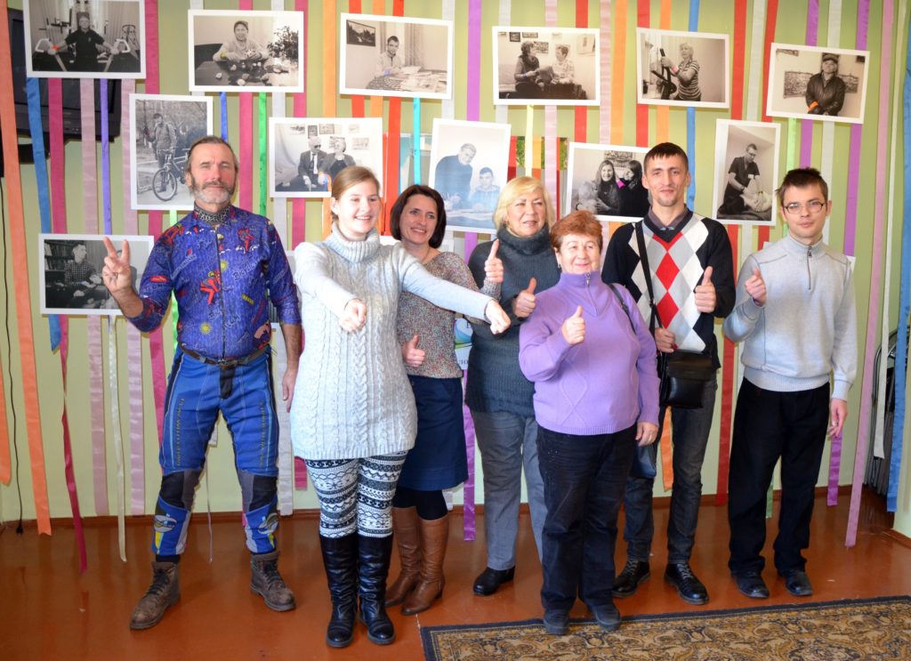 - Існують стереотипи, що у людей з інвалідністю життя позбавлене барв. У цих чорно-білих фото ми акцентували увагу на кольорових стрічках, що виражають емоції, барви милосердя. Ми показали, що такі люди живуть повноцінним життям. І нам, здоровим людям, подають приклад, – розповідає організатор культурно-дозвіллєвої діяльності Тетяна Поліщук. – Задум створити таку виставку у нас був давно. Та не було приміщення, щоб її презентувати. Влітку, завдяки фінансуванню Фонду Ігоря Палиці «Тільки разом», ми відремонтували й облаштували кімнату для творчості та відпочинку. Тоді почали реалізувати свій задум.