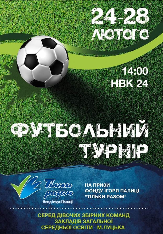 24-28 лютого відбудеться футбольний турнір на призи Фонду Ігоря Палиці «Тільки разом» серед дівочих збірних команд шкіл міста Луцька.