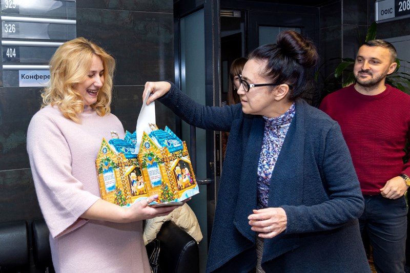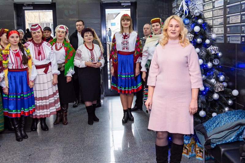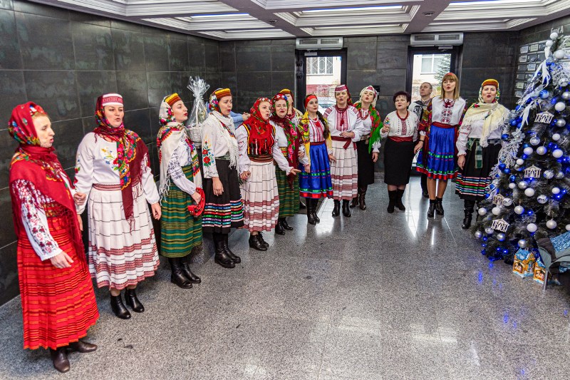 У четвер, 26 грудня, до Фонду Ігоря Палиці «Тільки разом» завітали незвичайні гості – учителі Луцької ЗОШ І-ІІ ступенів – колегіуму №11 на чолі з директоркою Наталією Гаць. Педагоги, вбрані в українські національні строї, подарували працівникам Фонду віншування з прийдешніми святами, звеселили колядками та щедрівками.