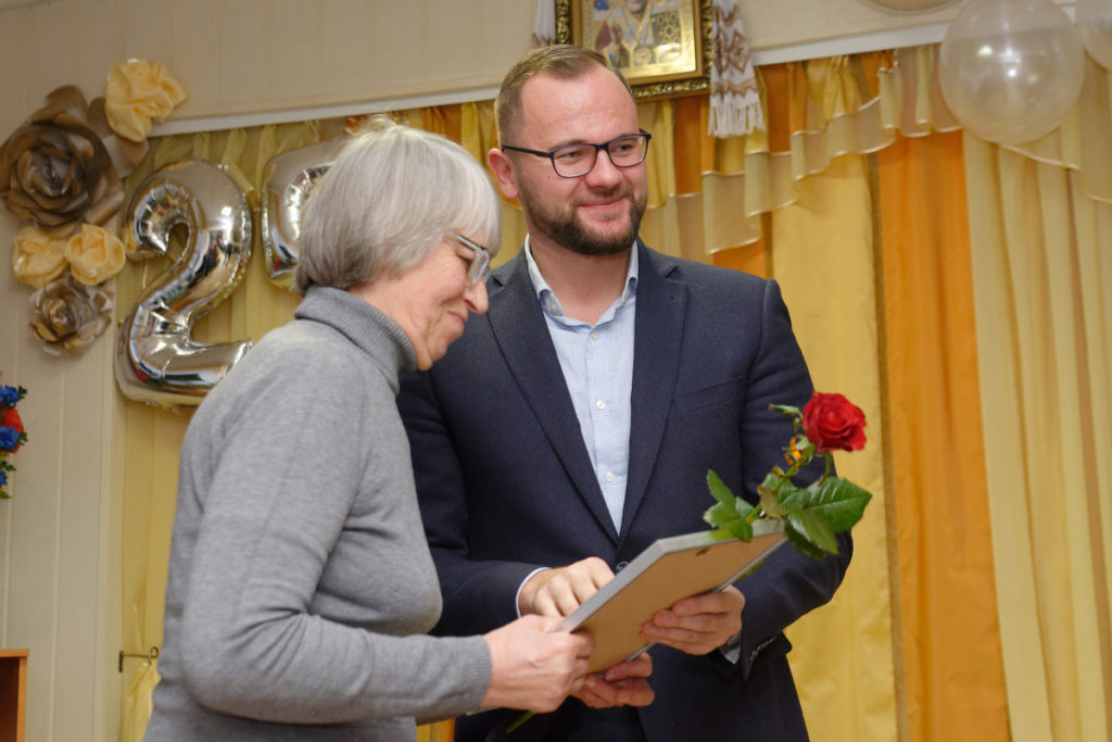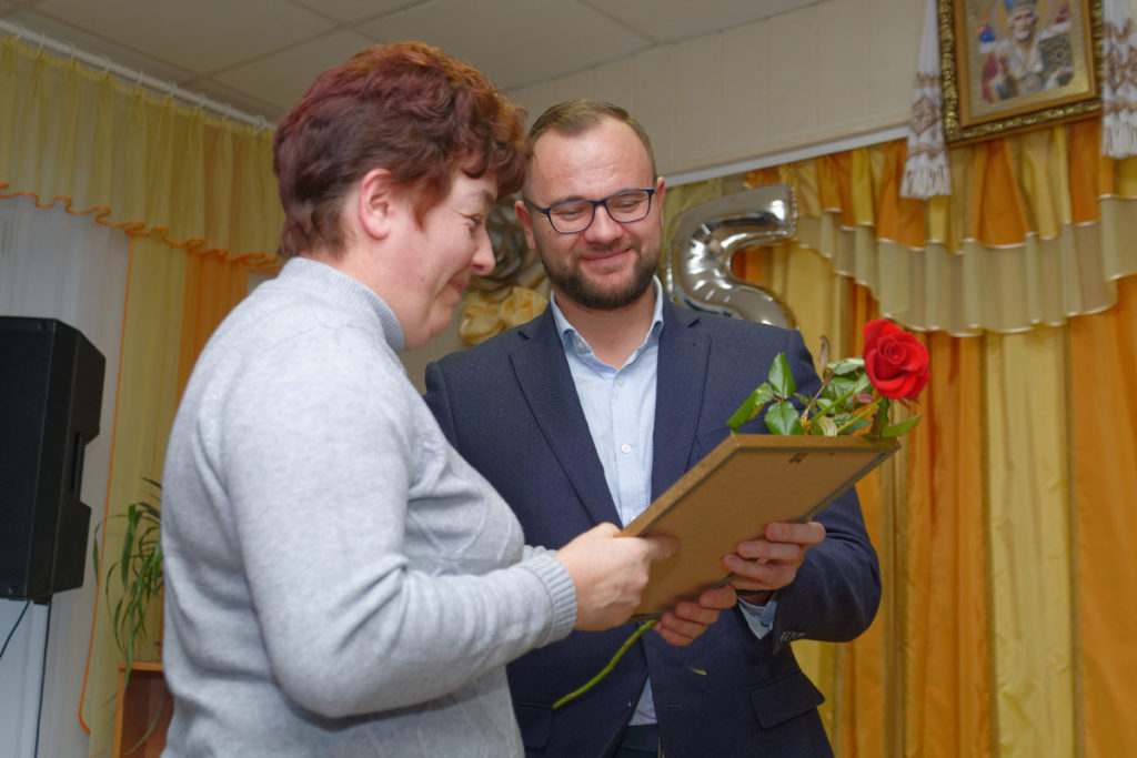 Від Фонду Ігоря Палиці «Тільки разом», який «у першу чергу намагається допомагати тим верствам населення, які залишилися наодинці», заступниця голови правління Фонду вручила багаторічним працівникам територіального центру соціального обслуговування теплі махрові простирадла. Очільниця закладу для потреб колективу отримала від Фонду Ігоря Палиці ноутбук та принтер. Святкування продовжилося музичними виступами та спільним частуванням.