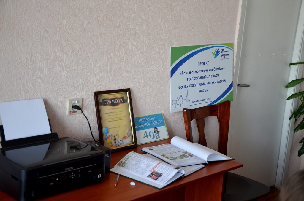 «Мені це цікаво. Стараюся бути у вирі подій, не могла стояти осторонь, коли задумували газету. До складу редколегії входять учні 6-11 класів. Діти злагодженою командою збираються після уроків, радяться, яку інформацію подати в номер. Зараз друкуємо 50 примірників по 8-10 сторінок. Раніше обходилися домашніми принтерами. Однак для якісного випуску газети потрібен сучасний кольоровий принтер. До того ж, ми хочемо збільшити тираж, для цього потрібно здешевити продукт за рахунок друку. Дякуємо Фонду Ігоря Палиці «Тільки разом» за сучасний кольоровий принтер», – каже Вікторія Можар.
