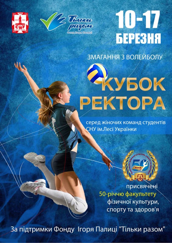 У Східноєвропейському національному університеті імені Лесі Українки з 10 по 17 березня відбуватимуться змагання з волейболу серед жіночих команд студентів (денної форми навчання) на Кубок ректора.