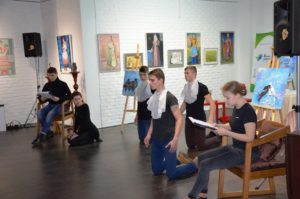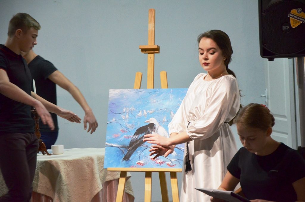 – Ми працювали над етюдом про білу ворону – людину, що не така, як усі, виділяється в суспільстві. Відчути роль і донести її суть до читача через образ птаха, оцю білу ворону – найскладніше, – ділиться Анастасія. – Важко було обіграти всі деталі, щоб образ був повним і цілим. Але, думаю, за чотири дні нам удалося зробити дуже багато.
