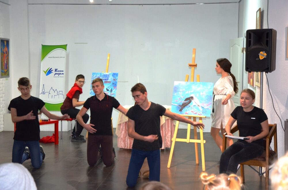 – Ми працювали над етюдом про білу ворону – людину, що не така, як усі, виділяється в суспільстві. Відчути роль і донести її суть до читача через образ птаха, оцю білу ворону – найскладніше, – ділиться Анастасія. – Важко було обіграти всі деталі, щоб образ був повним і цілим. Але, думаю, за чотири дні нам удалося зробити дуже багато.