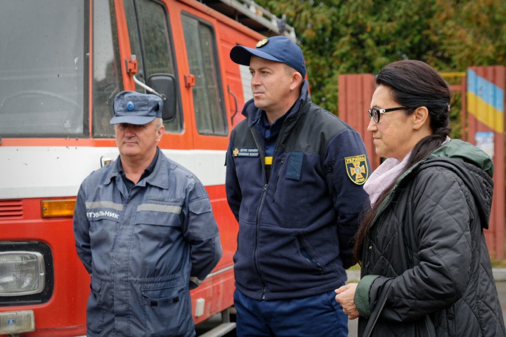 Пожежники Вадим Покиньборода і Володимир Матрипула цього дня, окрім того, що ділилися корисною інформацією, показували дітям амуніцію, дозволяли вмикати сирену, а найчемнішим – посидіти в кабіні й уявити, як то воно – мчати на допомогу людям.