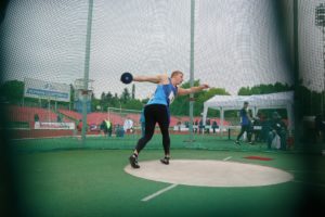 Юна «зірочка» нашої збірної Аліна Шух спочатку поступилася у секторі для стрибків у висоту білорусці Сімонович (результат Аліни – 1.83 м), але згодом без шансів перемогла у метанні спису – 51.00 м.