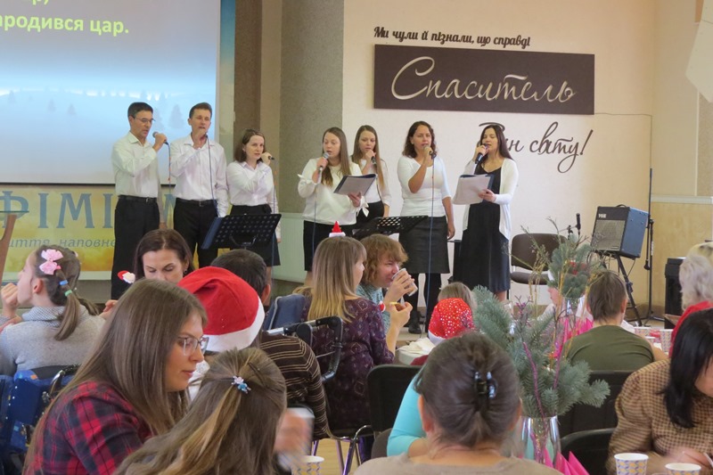 «Сьогодні в нас особлива різдвяна зустріч. До нас завітало 47 сімей, крім того, буде ще одне свято для 27 особливих родин, – розповіла Лариса Новацька, відповідальна за служіння з сім’ями, які виховують дітей з інвалідністю. – Ми весело проводимо час, граємо в ігри, співаємо, робимо веселу гімнастику, пригощаємося смаколиками, що їх приготували наші волонтери. У нас багато волонтерів і з «Фіміаму», і з інших церков Луцька. Вони допомагають бавити дітей, розважають їх. І це дуже важливо, адже зазвичай такі діти обділені увагою, мають обмежене коло спілкування, здебільшого сидять удома, тож такі заходи для них – справжнісінький вихід у світ. Пора напередодні Різдва – особлива, це пора віри в диво та здійснення бажань, тому сьогодні даруємо дітям різдвяний настрій. У реабілітаційному центрі «Агапе» працюють і з дорослими, і з дітьми з інвалідністю, навчають нас, як підходити до дитини, як із нею спілкуватися, як керувати візком. І навіть коли дитина не говорить, шукати точки контакту, бо якщо не можуть сказати вуста, говорять очі. Я сама – мама дитини з інвалідністю. Ми радо ходимо у «Фіміам» на зустрічі, майстерки, адже це – можливість для моєї дитини соціалізуватися, знайти друзів».