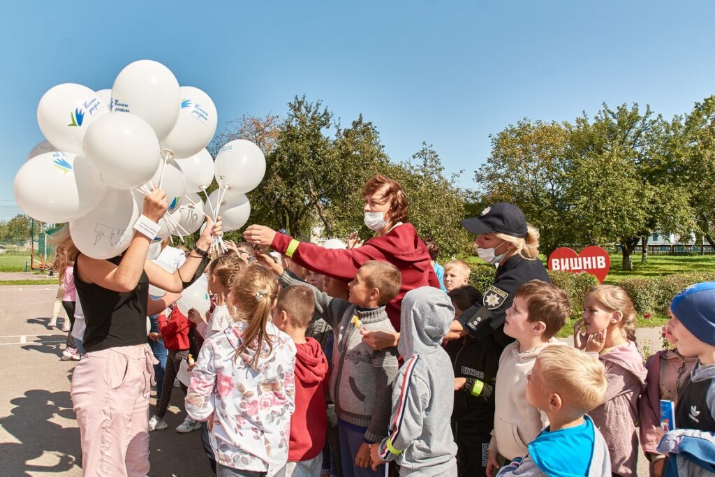 «Наша громада відносно молода, їй лише три роки. Ми об’єднали сім сільських рад, 19 населених пунктів, – розповіла перша заступниця голови Вишнівської ОТГ Галина Федончук. – Питання в тому, що спадок, який дістався Вишнівській громаді, бажав би значно кращого. Ми пропрацювали всі наші тонкі місця й вели роботу в напрямку зміцнення матеріально-технічної бази, інфраструктурних об’єктів, які розміщені у нас в громаді». Одним із вкрай важливих питань, що потребували розв’язання, було забезпечення безпеки в громаді, зазначила пані Галина. Адже її населені пункти розташовані дуже близько до кордону. Через її територію рухається дуже багато транспорту.«Ми почали з того, щоб провести капітальні ремонти наших вулиць, доріг, забезпечити вуличне освітлення. Крім того, на сьогодні в нашій громаді вже працює два поліцейські громади і, звісно, на часі постала освітня кампанія, щоб навчити не лише дорослих, а й найменших наших школярів, які тепер є учасниками дорожнього руху, які щодня долають кілометри до школи, часто їдуть велосипедами, – зазначила Галина Федончук. – І от сьогодні завдяки проекту Фонду Ігоря Палиці «Тільки разом» ми стали учасниками «Безпечного пішохода». Звичайно, нам хотілося б залучити до заходу більше шкіл громади, але у зв’язку з карантинними обмеженнями зупинилися на вишнівській школі. Думаю, що далі естафету можна буде передати і в інші навчальні заклади». Проектний менеджер у соціальній сфері Фонду Ігоря Палиці «Тільки разом» Лариса Тарасюк привітала школярів із початком навчального року та закликала уважно слухати тренерів, адже корисна інформація, якою вони діляться, не раз стане у пригоді кожному.«Бажаю, щоб ви всі були здорові, отримали за цей навчальний рік дуже цікаву і потрібну вам для життя інформацію. А сьогодні в межах проекту ми вам проведемо такий оригінальний урок, маленьке свято, присвячене тому, як потрібно берегти своє життя, – наголосила вона. – Ми сьогодні надамо вам інформацію, якою варто поділитися з друзями, батьками, дідусем, бабусею».На її думку, саме отримана в дитинстві інформація про правила безпеки на дорозі, поводження з вогнем, як діяти в умовах надзвичайної ситуації є запорукою їхньої безпеки у майбутньому.«Я радий, що наша школа стала учасницею освітнього проекту «Безпечний пішохід». Ця тема є дуже актуальною і вимагає більшої аудиторії. На жаль, через протиепідемічні заходи ми проводимо його в рамках свого навчального закладу. Дуже сподіваюся, що досвідом, який ми сьогодні отримаємо, інформацією обов’язково поділимось», – зазначив директор школи Володимир Міщук. З його слів, така освітня програма як ніколи на часі, адже частину дітей до опорної школи підвозять шкільним автобусом міжнародною трасою Київ-Варшава, тож діти мають знати, як поводитися в різних ситуаціях на дорозі.Під час свята Лариса Тарасюк презентувала учасникам художньої самодіяльності, які подарували присутнім яскраві номери, брендовані екосумки і рушнички від Фонду Ігоря Палиці «Тільки разом», а для шкільної бібліотеки – книги, до видання яких долучився Фонд. Школярики яскравими зграйками перебігали від локації до локації, засипаючи тренерів запитаннями, припасовували на рукави світловідбивні флікери, які отримали в подарунок від організаторів акції, та активно брали участь у вікторині про правила до