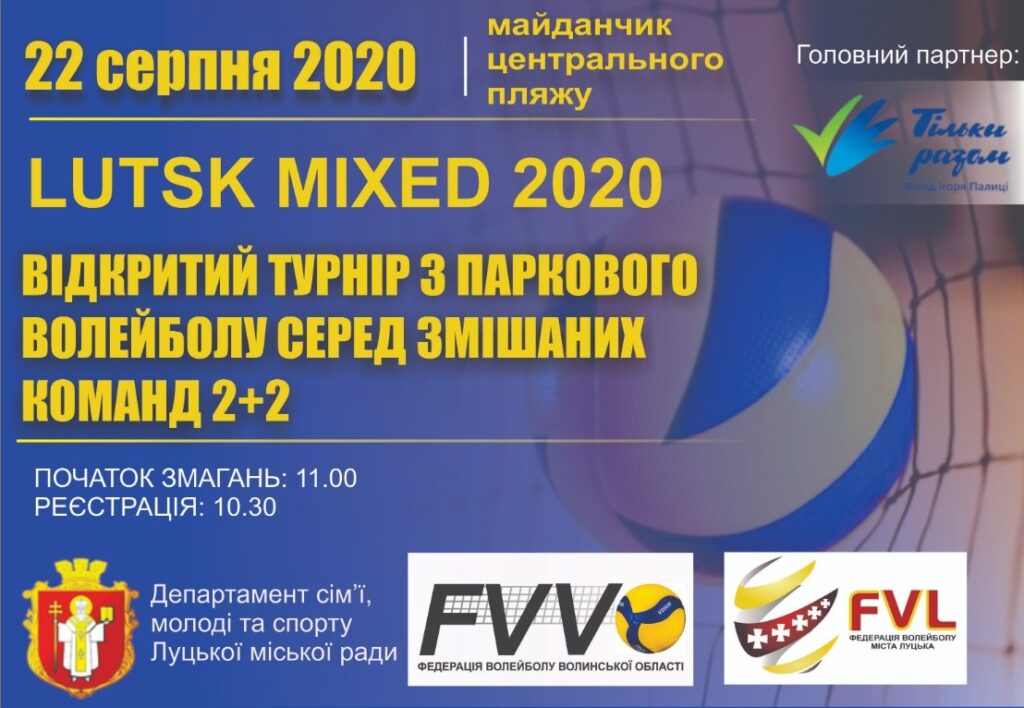 18 Серпня, 2020 tilkyrazom Анонси, Без категорії, Волинь спортивна, Луцьк, Новини, Слайдер, Спорт 0 0 0 коментарів Запрошуємо на турнір із паркового волейболу! 22 серпня у Луцьку відбудеться відкритий турнір із паркового волейболу серед змішаних команд 2+2.